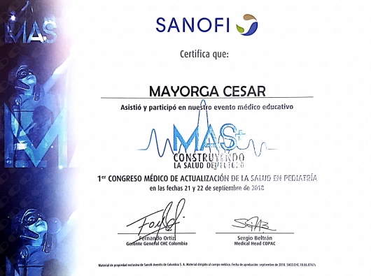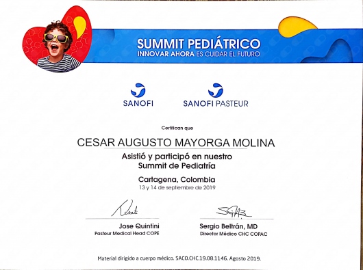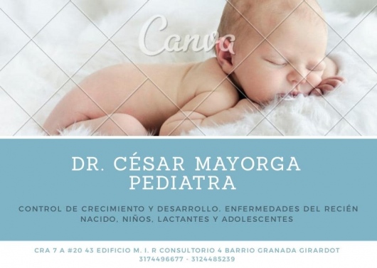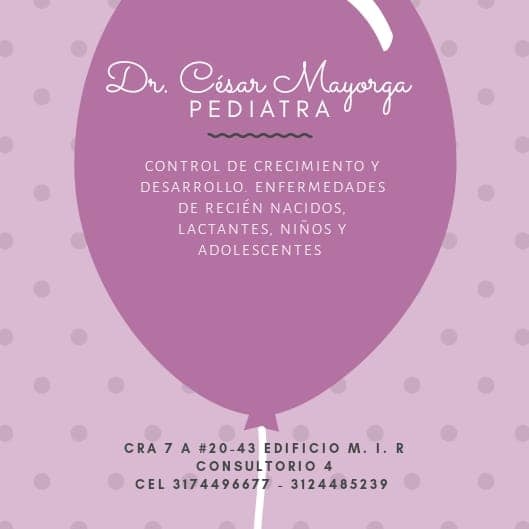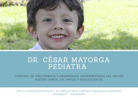 Los espero para una atención oportuna y de calidad pediátrica. muchas gracias estoy para servirles. CESAR AUGUSTO MAYORGA MOLINA Médico Pediatra