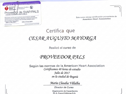 Actualización constante en todas las áreas de la pediatría tengo diplomados actualizados en urgencias y emergencias pediátricas avalados por la sociedad colombiana de pediatría y entidades internacionales se atienden en mi consultorio urgencias de baja complejidad se hace aproximación al diagnostico del paciente y toma de decisiones certeras para tranquilidad de los padres.